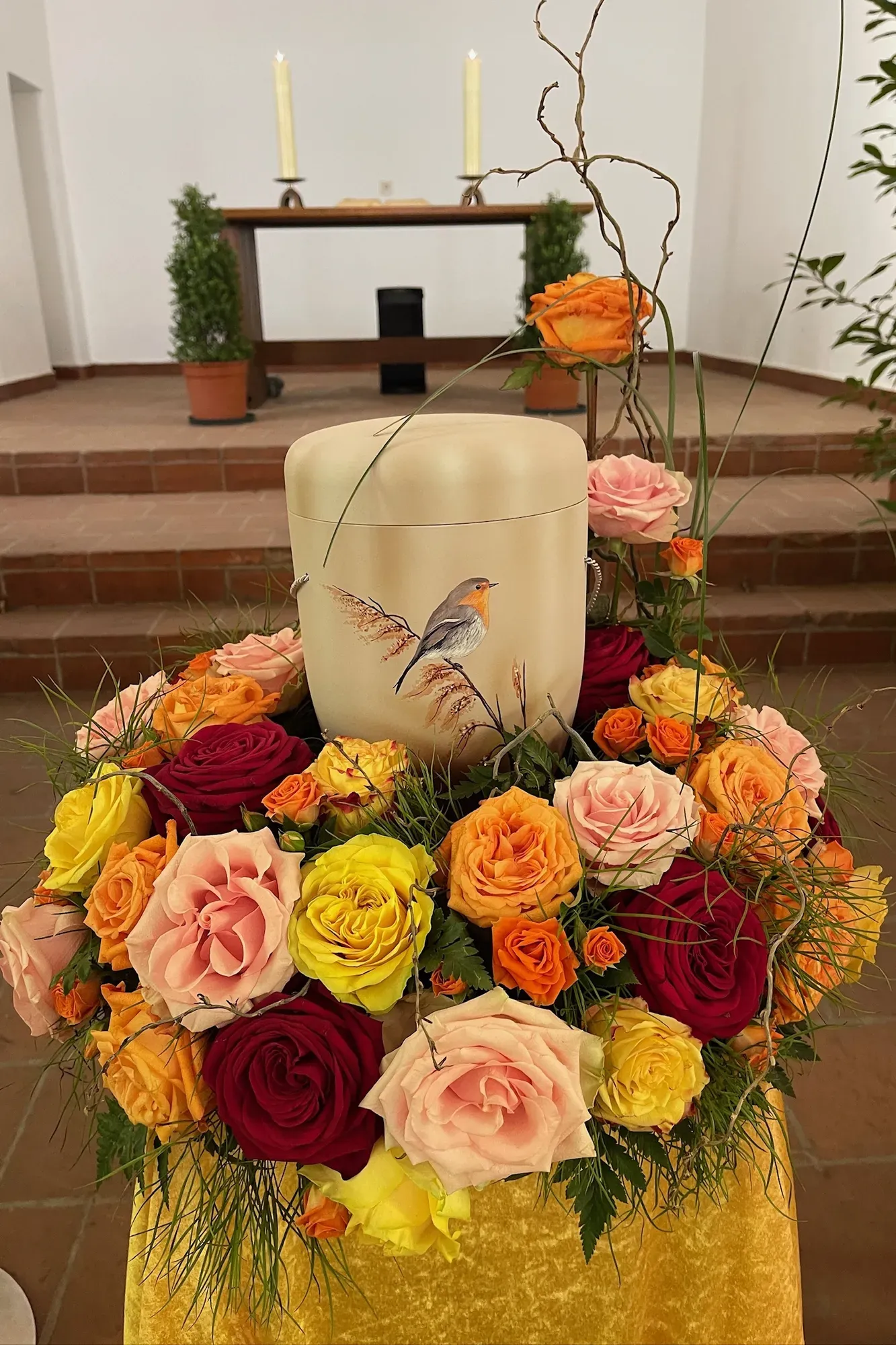 Diese verantwortungsvolle Aufgabe übernehmen bei kirchlichen Trauerfeiern die Geistlichen. Bei weltlichen Trauerfeiern unsere geschulten und professionellen Trauerredner und Trauerrednerinnen.